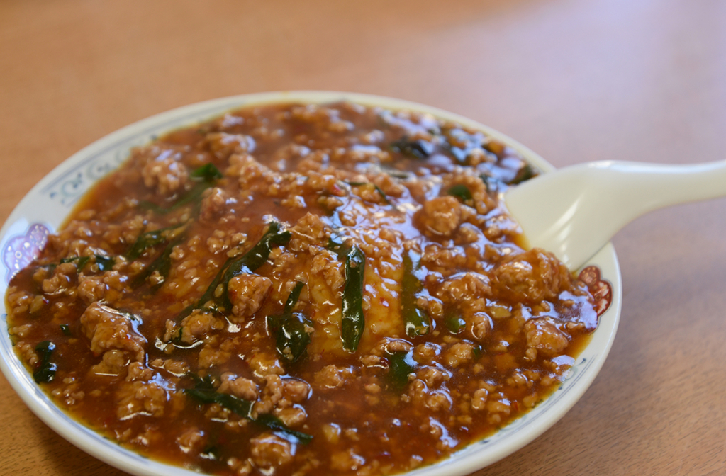 元々は麻婆麺から試行錯誤を重ねて完成した一品。「豆腐抜きの麻婆豆腐をラーメンに」というコンセプトで、学生や労働者が手軽に食べられる、スタミナのつく一杯を目指しました。