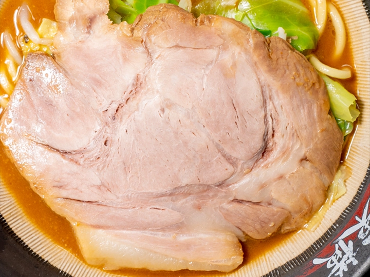 大きなすり鉢状の丼での提供も特徴的です。直径が大きく深い丼に、巨大なチャーシュー(60~70g)、野菜の山、そして濃厚なスープが盛られた姿は、まさに「外食=ごちそう」という哲学を体現しています。