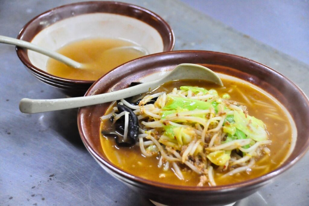 たっぷりの炒め野菜も重要な構成要素です。キャベツ、もやし、キクラゲ、豚ひき肉がラードで炒められ、シャキシャキの食感と野菜の甘みが濃厚な味噌とのバランスを取ります。野菜の水分が食事中にスープに溶け出し、自然に濃度を調整する効果もあります。某店では3本分のネギ(約300g)を使用するなど、野菜の量は圧倒的です。